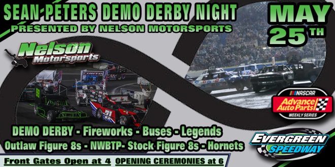 MAY 25th, 2025 SEAN PETERS DEMO DERBY NIGHT PRESENTED BY NELSON MOTORSPORTS